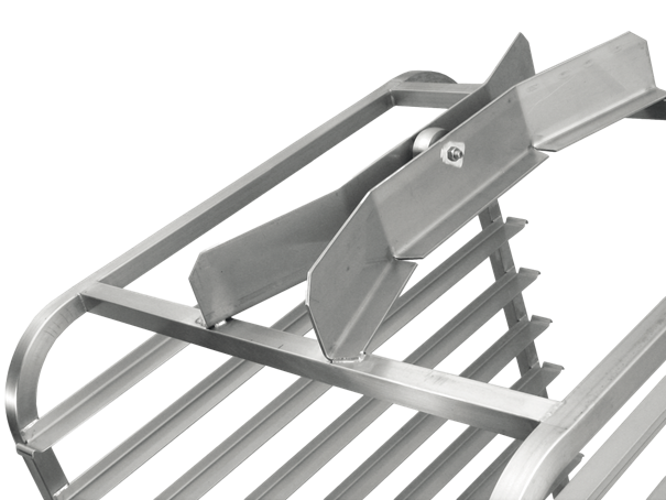 A hegesztett, zárt szelvényes rozsdamentes acél konstrukció nagy igénybevételre készült, hosszú élettartamot és megbízható működést biztosít a napi termelés során. A rozsdamentes sütőkocsi különböző lemezméretekhez és polcszám-igényekhez egyedileg konfigurálható, így pontosan a gyártási folyamatokhoz igazítható.