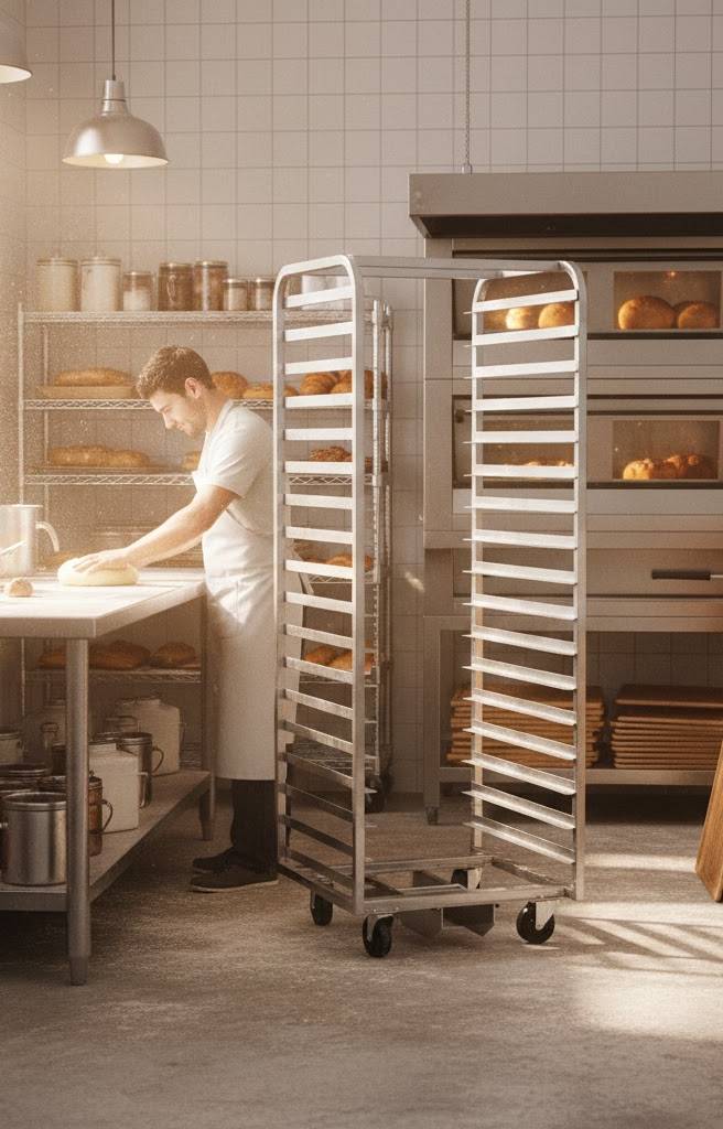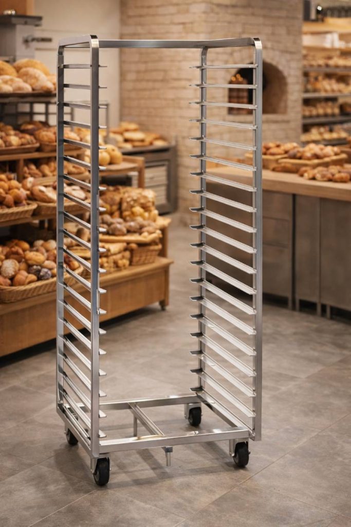 A higiénikus kialakításnak köszönhetően a rozsdamentes sütőkocsi könnyen tisztítható, megfelel az élelmiszeripari elvárásoknak, miközben a hőálló, simán futó görgők megkönnyítik a mozgatást. Egyedi méretezés, testreszabott kivitel és megbízható alkatrészellátás biztosítja, hogy a sütőkocsi hosszú távon is hatékony és gazdaságos megoldás legyen.